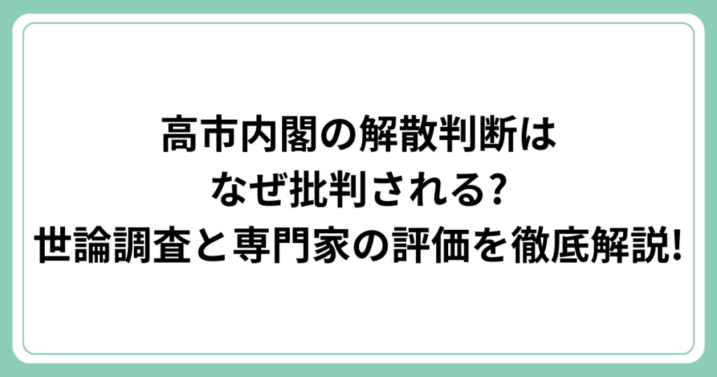 高市内閣の解散判断はなぜ批判される?世論調査と専門家の評価を徹底解説!