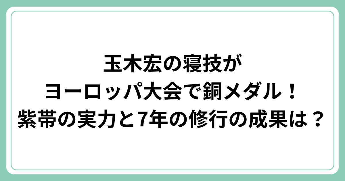 玉木宏さんがヨーロッパ最大のブラジリアン柔術大会で銅メダルを獲得したことは、多くのファンにとって驚きのニュースでした。